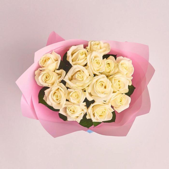 троянда біла – 15 шт. оформлення букета в упаковка – 1 шт.