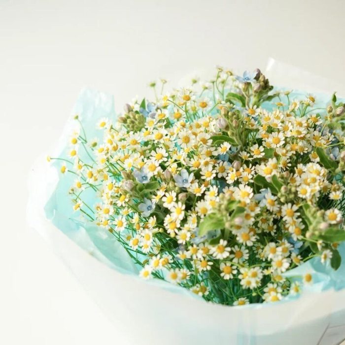 Привет, ромашки! Этот букет – настоящее воплощение летнего настроения и свежести. Яркие желтые цветы ромашек гармонично сочетаются с изящными голубыми оксипеталумами. Будьте уверены, что этот букет станет прекрасным подарком для любого случая: от дня рождения до простых … Показать ещёзнаков внимания. Порадуйте своих близких яркими красками