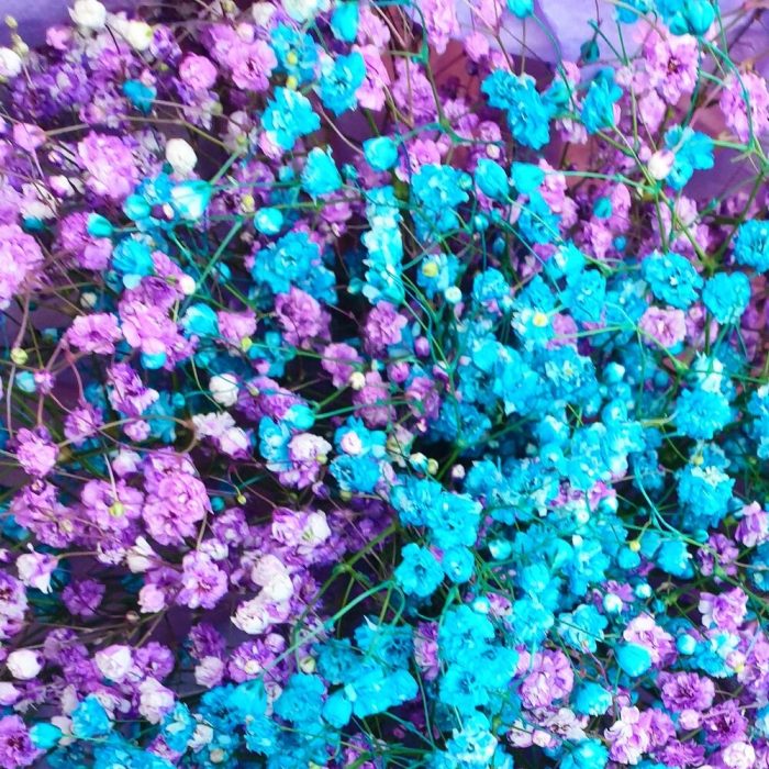 Лента атласная – 2 шт.Открыточка с вашими пожеланиями – 1 шт.Оазис флористический – 1 шт.гипсофила радужная – 15 шт.тишью упаковка сиреневая – 1 шт.