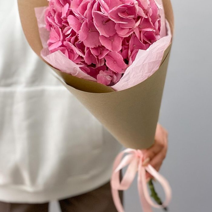 Лента – 1 шт.Упаковка – 1 шт.Гортензия розовая – 1 шт.