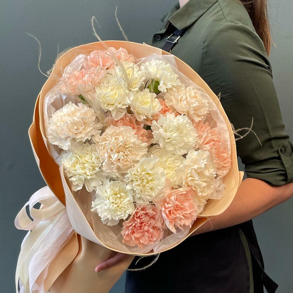 Воздушный букет из гвоздик и ковыля