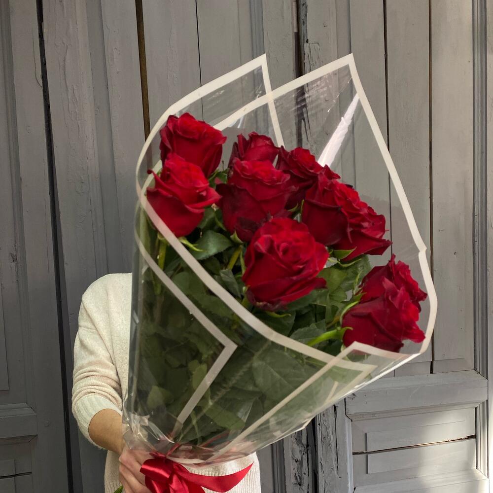 Роза Эквадор 70 см – 11 шт.Упаковка дизайнерская – 1 шт.Лента атласная – 1 шт.