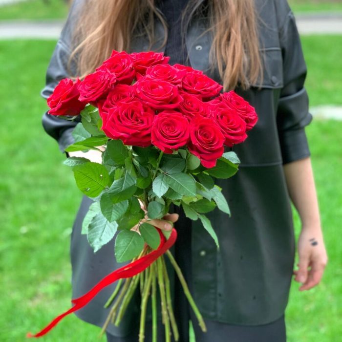 Букет из 15 красных Роз 50 см
