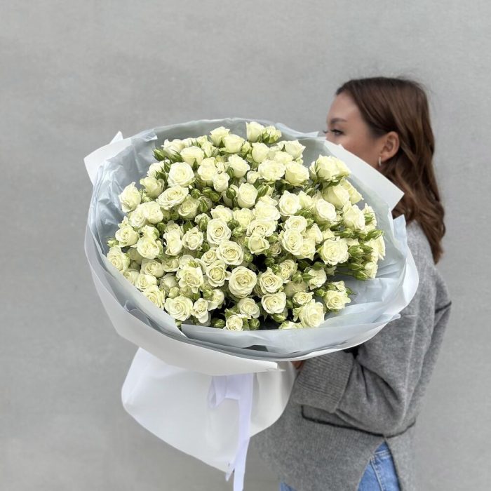 Пышный букет из изящных спрей роз в нескольких оттенках.