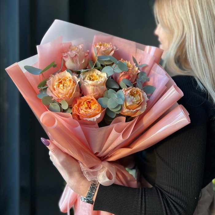 Букет пионовидной розы «Персиковое сердце»