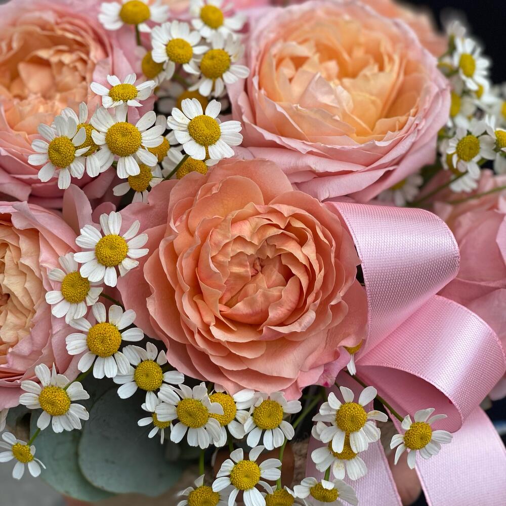 Альстромерии, Кустовые розы, Лизиантусы, Пионовидные розы, Розы, Ромашки