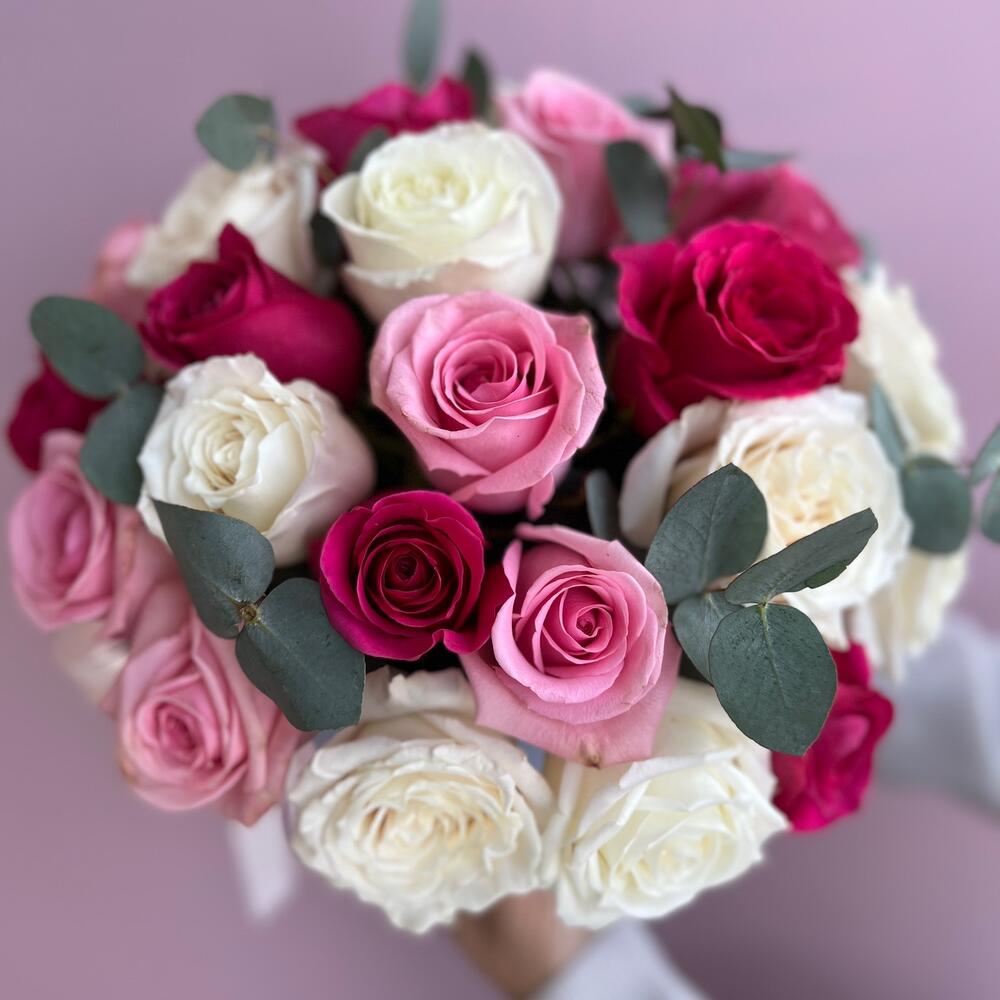 Гвоздики, Кустовые розы, Лизиантусы, Пионовидные розы, Розы