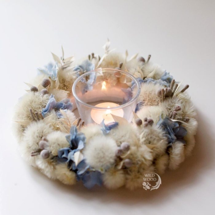 «Лавандовое созвездие» Букет из розы, гвоздики, статица и хлопка