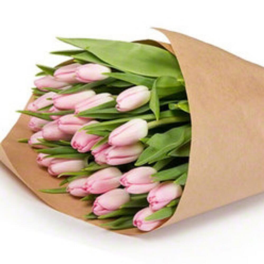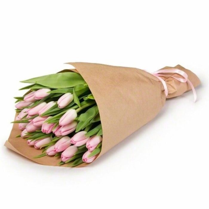 Нежно розовые тюльпаны в крафте